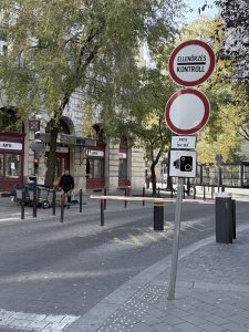 On the way to the parliament building, this beautiful stone pictogram lay at our feet. We also walked along a street that was traffic-calmed in three ways 😉 not only by a “no entry” sign but also by bollards and camera surveillance.
